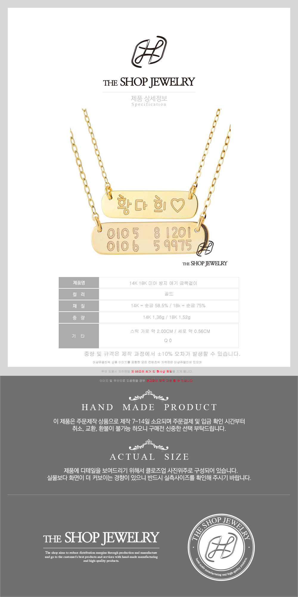 | 소재/순도/밴드재질 | 14K 18K 골드 / 14K - 58.5% 18K - 75% / 해당사항 없음 |